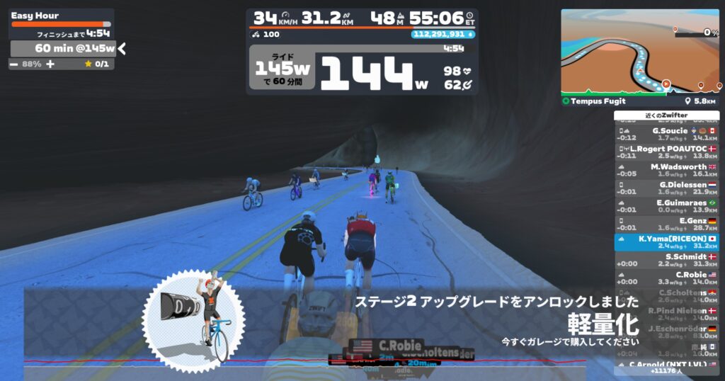 もしセット数が半分だったら10~15W上げてちょうどいいでしょう。ほんだチャンプの推奨強度と同じぐらいになる感じです。私は一般人なので5hやる前提の場合その強度だと確実にLT1を超えてしまいます。かなしいね。