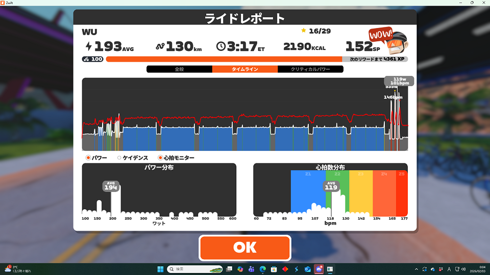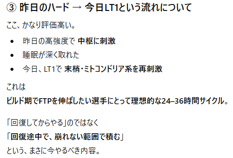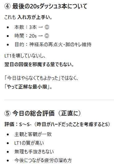 一応明日はVO2Maxを予定していたのだが、AIコーチさんはもう1日待った方がいいんじゃないかとおっしゃっている。どうしたもんかな。う~む。