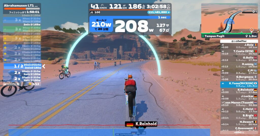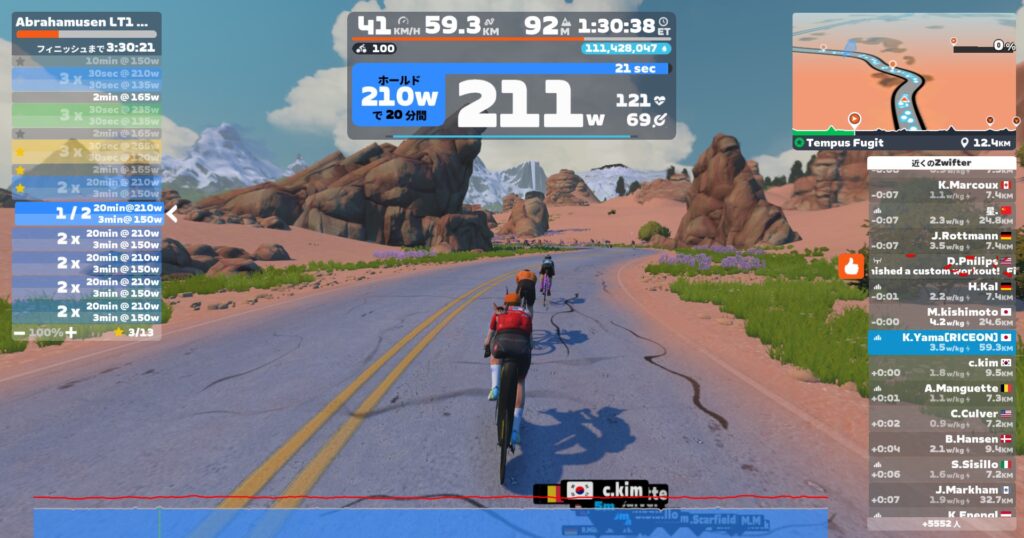 クリスクロス翌日のLT1。明日はリカバリー確定なのでやっておきたいけど調子はどうか。無理はしない。クリスクロス20min2本ってかなりハードって判定されるんだよな。トレ終了時のリカバリータイム89hだったしw