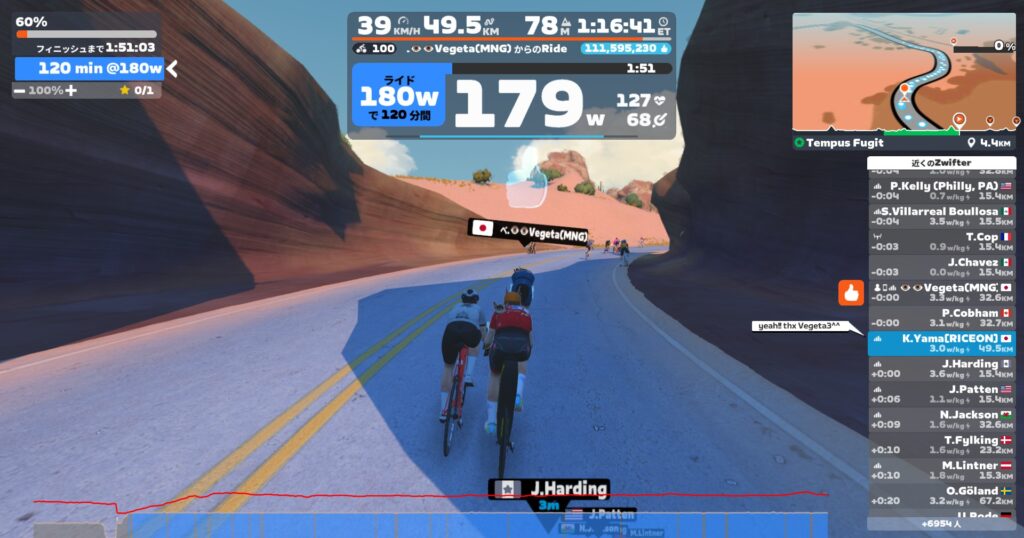 てか最大心拍数177の設定だけどもうちょっと上かも。去年の最大値を採用しているんだけど、今日そこまで上がった。きつかったのは確かだけど、最後スパートしてない(ERGだからできない)からまだ上がるなこりゃ。