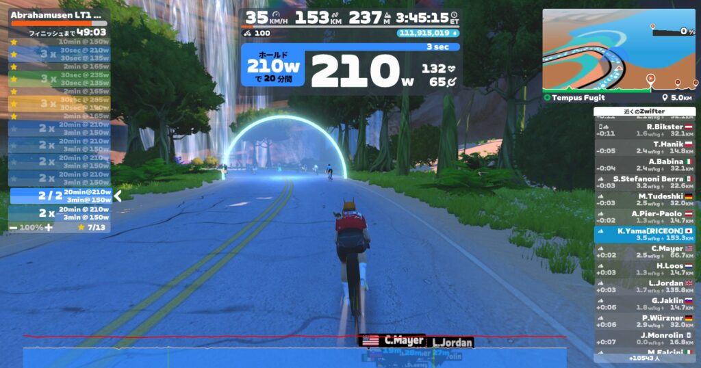 3minインターバル(5本)ってかなりギリギリの強度でもあまり疲労残らないかも。まあボリューム自体は少ないしな。