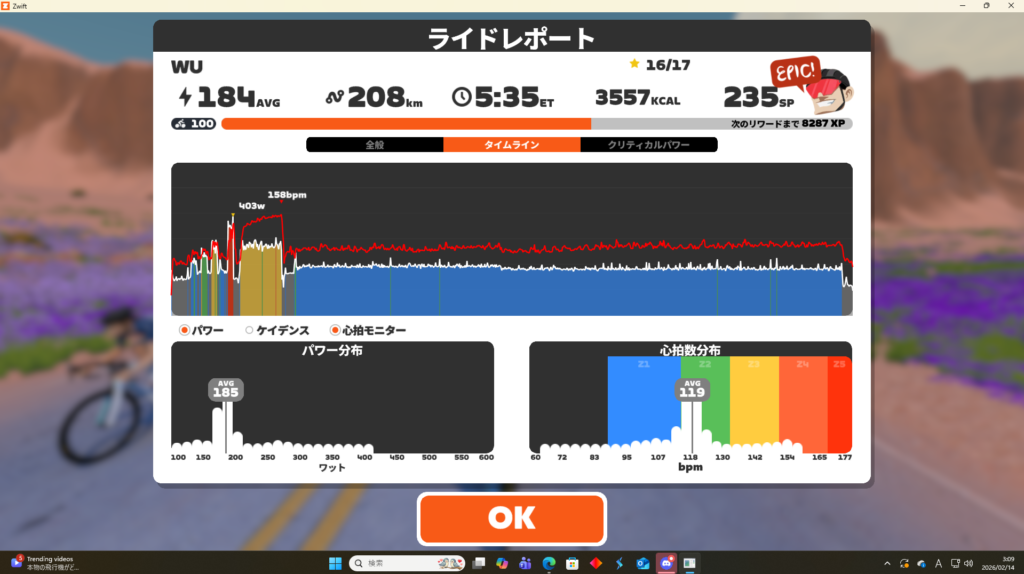 もともと今日が終わったらレスト週にするつもりだったのですが、やっぱりいいタイミングなのでしょう。あまり疲労感なく来ていて、VO2Maxなんかもソコソコいけていたのですが、今日は思ったより疲労を感じました。