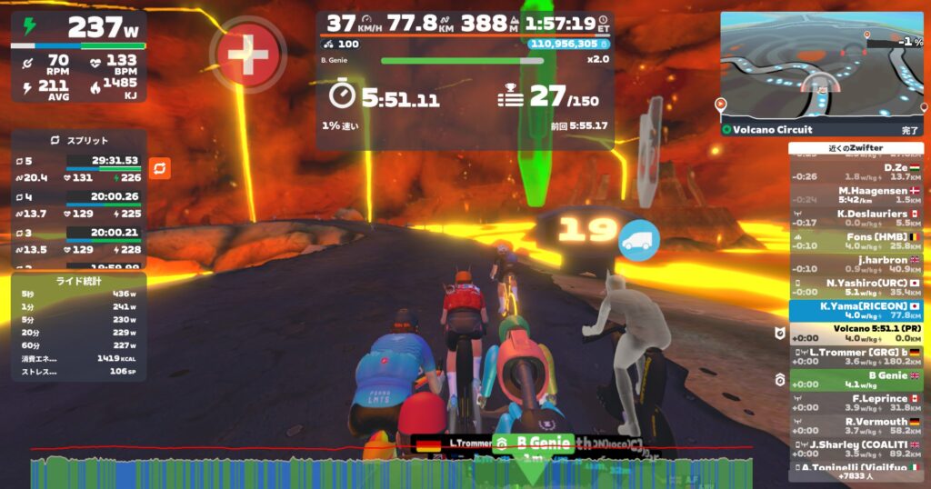 結構調子いいかなと思ったけど、ERG切っていたから気持ちよく回せたように感じたってだけかも。笑