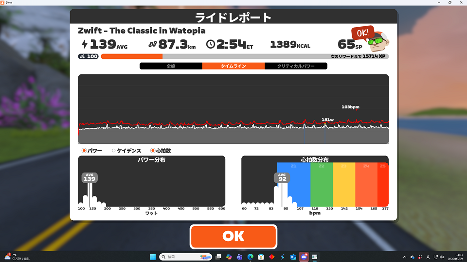 心拍低くていい感じかな。