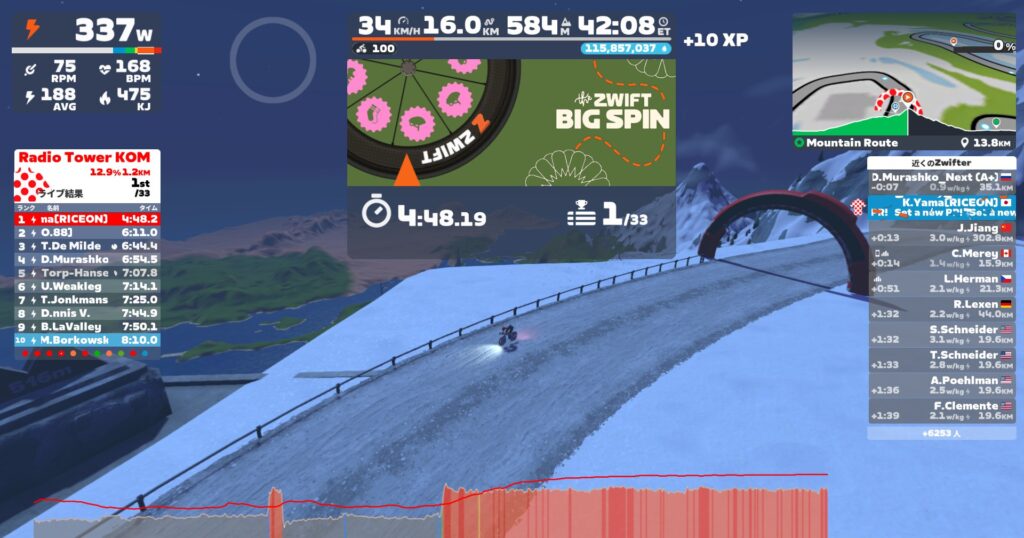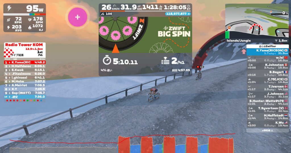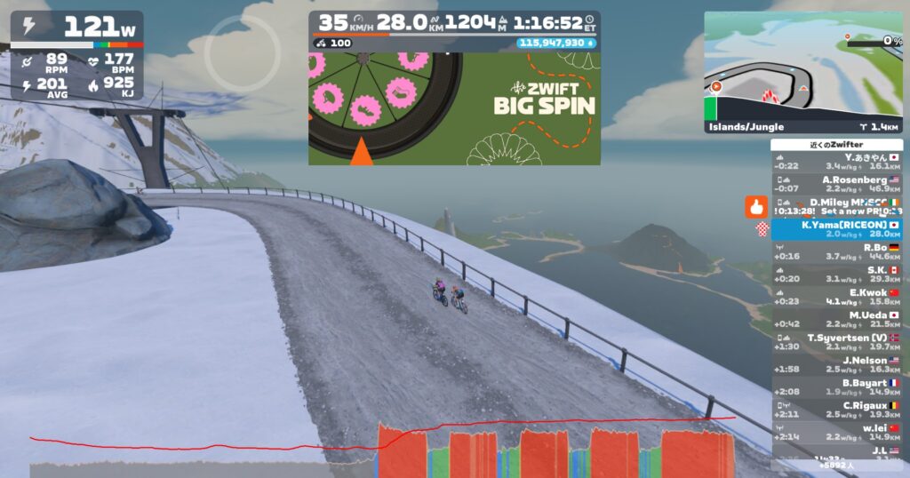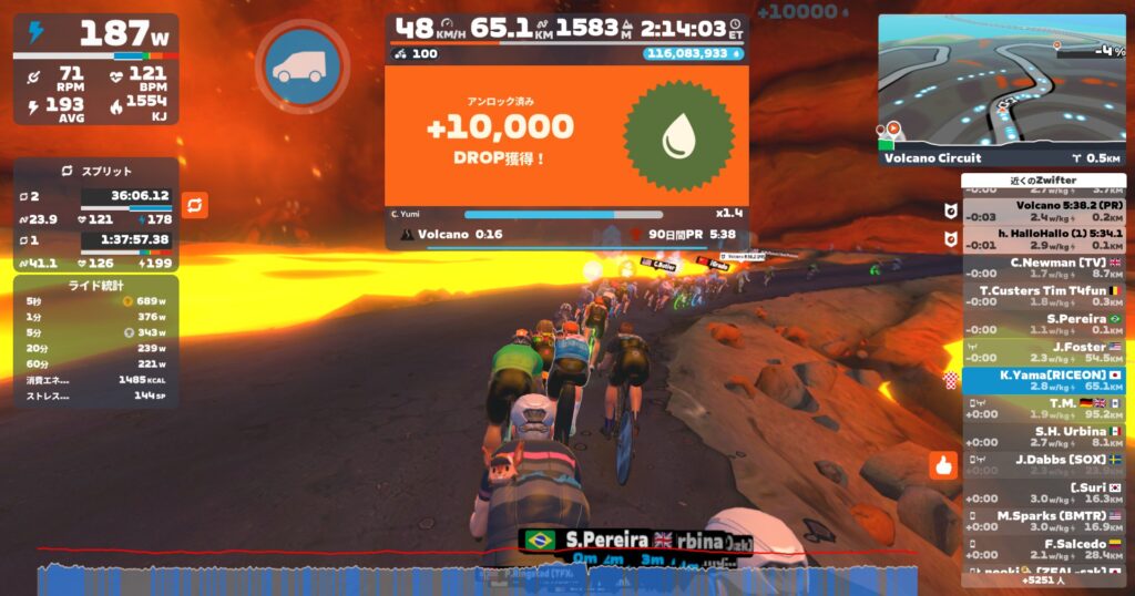 10sダッシュを入れつつ下り、バイク乗り換えて火山に移動。今週はYumiさん。ブログ書いていたら千切ってしまったwしまった。。体重増やすわ。笑