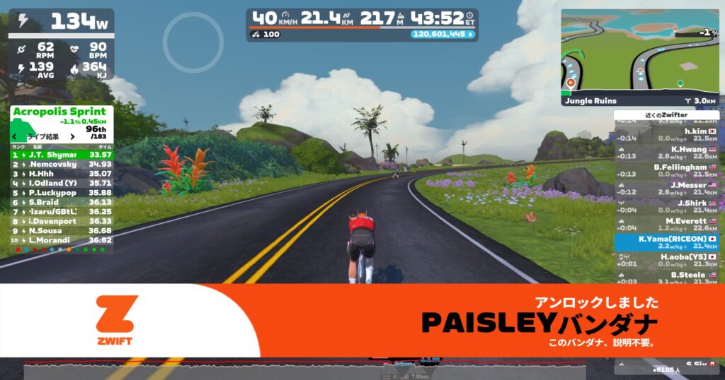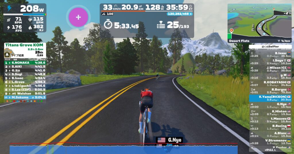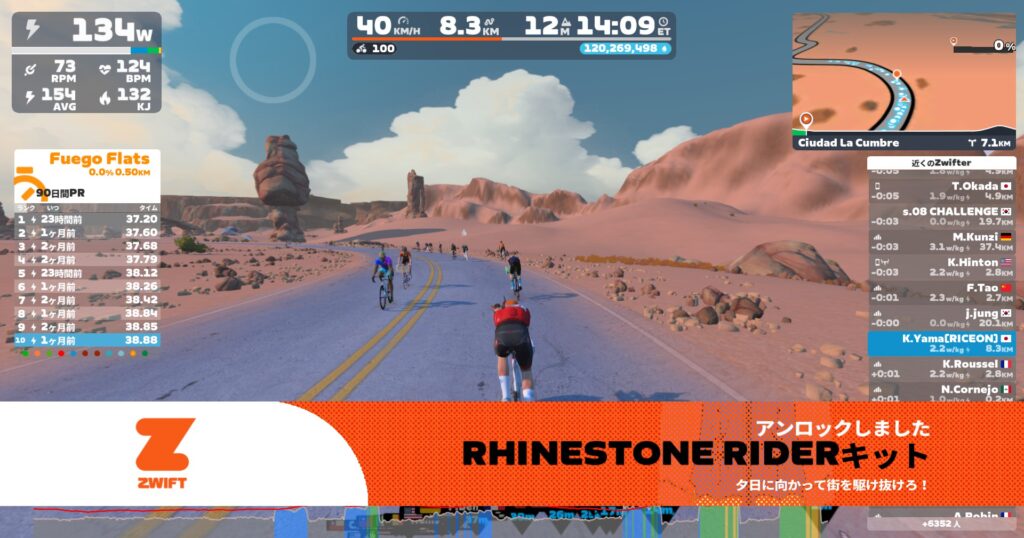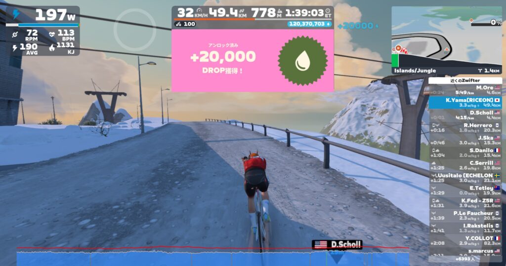 1往復で2.7万ぐらい稼げる。9minで往復すると63minで19万ぐらい稼げちゃう。パワーによってはペーサー張り付き火山より効率いいって人もいると思う。ただエピコムがジャマw