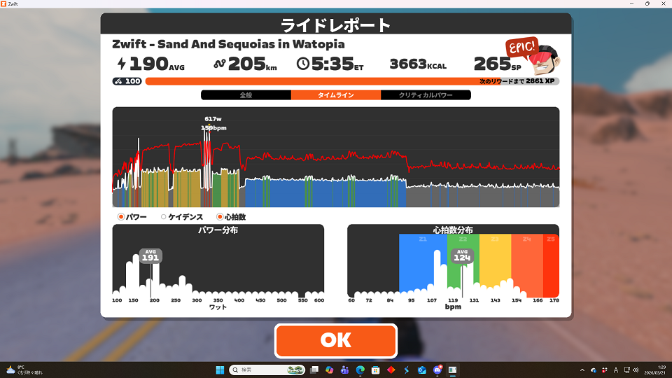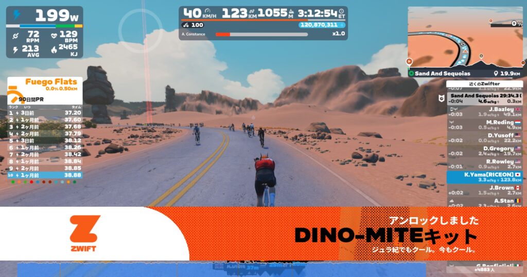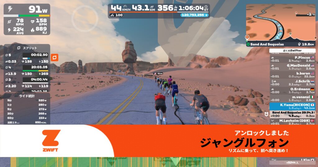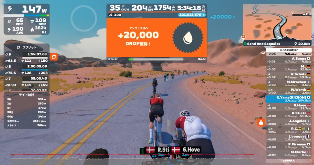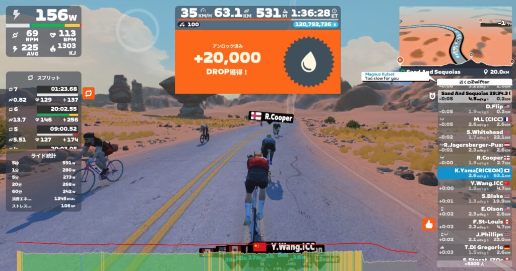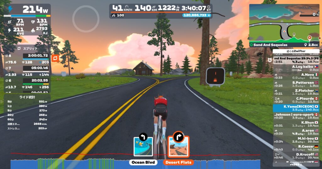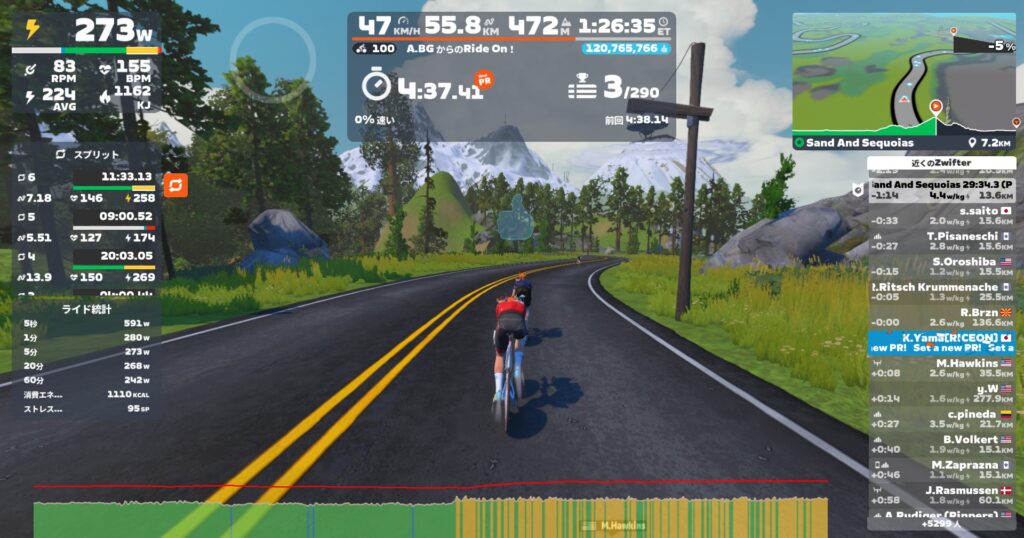 20sのスプリントインターバルを3本入れて、テンポ~SST。