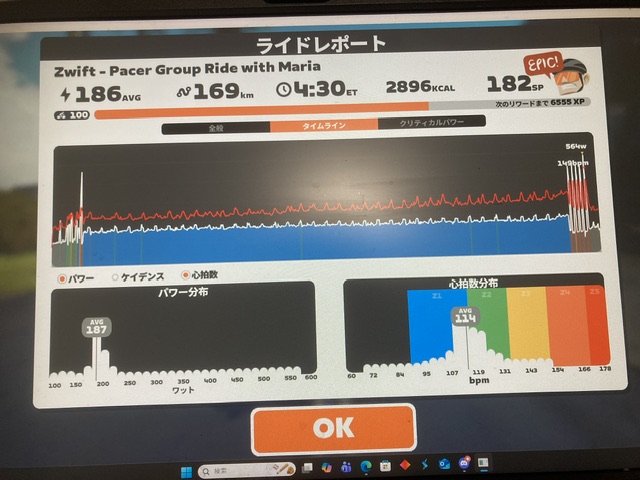 ちょうど昨日追い込んだところで今日はガッツリ(LT1やSSTを含む6hとかの)ロングをやるつもりはありませんでしたし、実走もできないのでタイミング的にはよかったです。