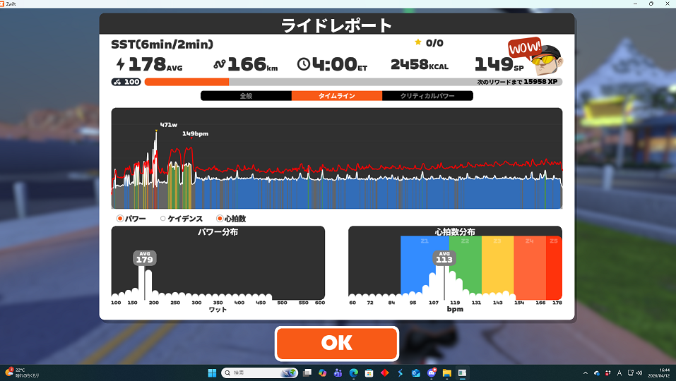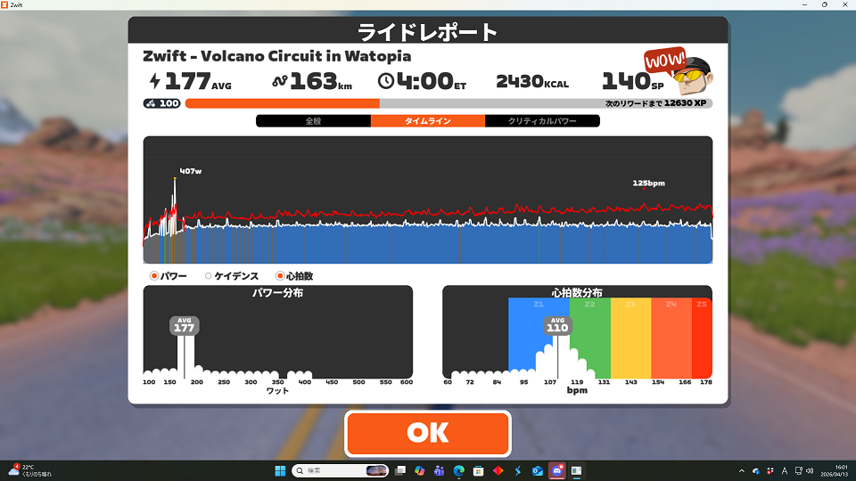 暇すぎて昼寝したら心拍が40。もちろん熱もないし体調もよさそうだし…Watopia帰っても大丈夫でしょ。ってことで帰還。昼過ぎ。日曜はレストとか言った気がするけどアレは嘘だ。笑