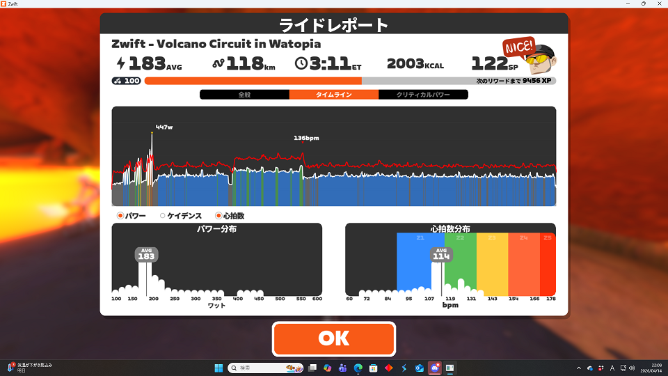 ベースの部分だけでも失わないよう、毎日低強度のサイクリングだけはやっておこうというところです。