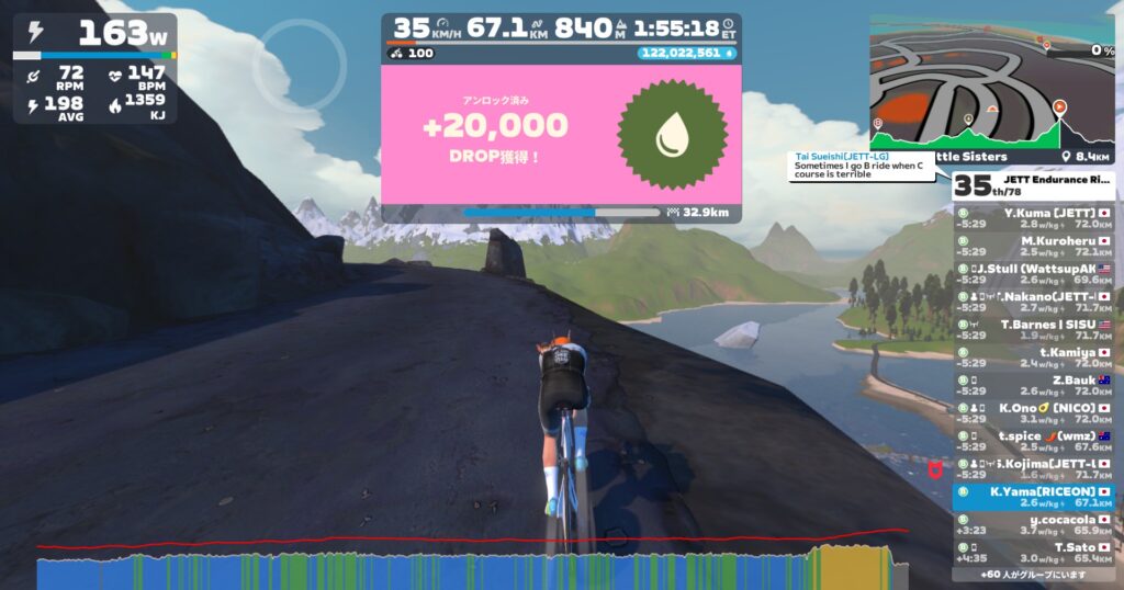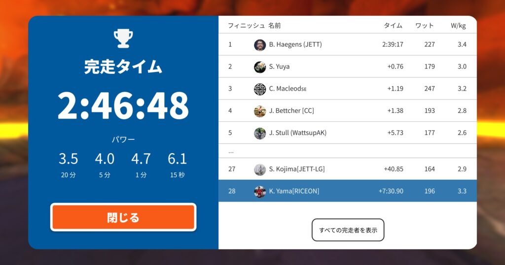 で、そんな状況で強度の高いトレーニングなんかしたら余計治らなくなるどころか体調が大変なことになりかねないので、そこは諦めてZ2していました。有酸素のベースだけでも失わないように。焦ってもいいことないですからね。