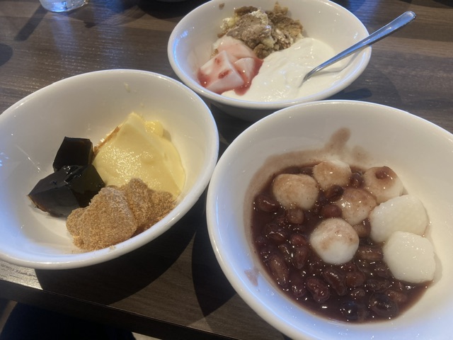 前回行った店舗とビュッフェの内容が若干異なっている部分もあった。ぜんざいはなかったな。フルーチェがヨーグルトになっていたり、カボチャがないけどトマトがあったり。