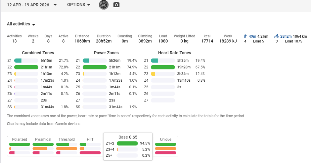 28h02min、1,075TSS。※落車翌日の日曜、レストすると言いましたが嘘だったのでそれも含めて8日分。