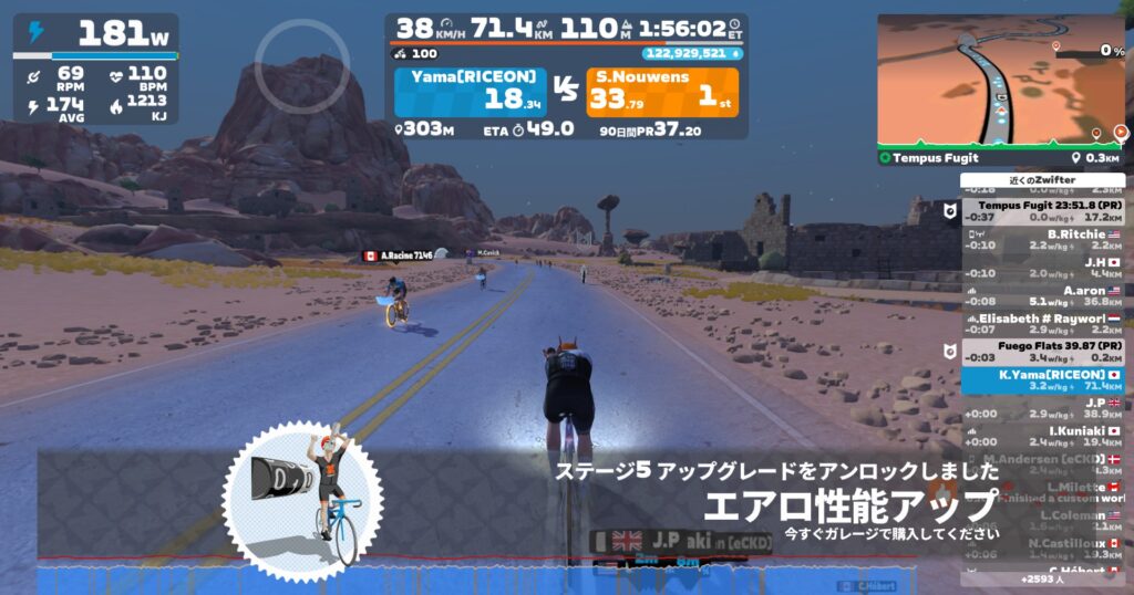 私は効率厨なのでwほぼ回り道せずにやってきて約13ヶ月というところだった。レースに一度も出ていないので育ち切ったハイエンド機材を使う必要もなく。SL8とかはハイエンドで時間かかるので完璧ではないけど。明確にロスしたのは大晦日のエベレスティングでレベル5エートスを使ったときぐらいかな?wあとなぜかバイクに経験値が入らなくなるバグが起きたときw