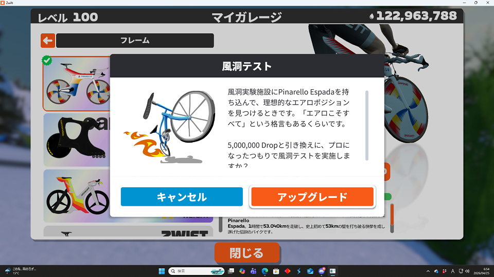 次何育てようかな?せっかくだからリアル愛車のPROPELでも育てるか。Zwift内じゃ全然強くなくて難の特徴もないクッソ地味なバイクだけど。笑