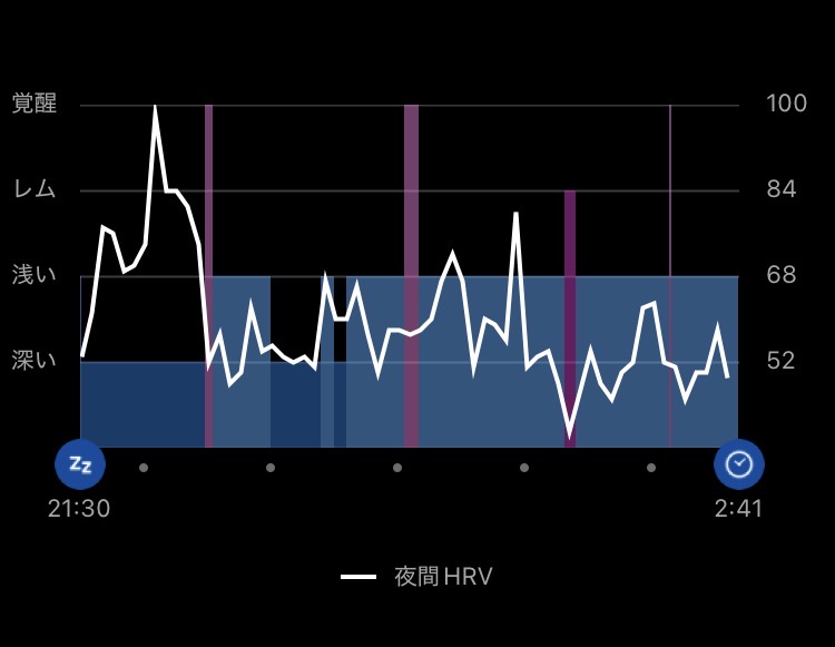 なおあまりよく眠れなかった模様。なんでや。睡眠スコアは54…。昼休みとかも寝てるし昼寝しすぎかもしれんな。