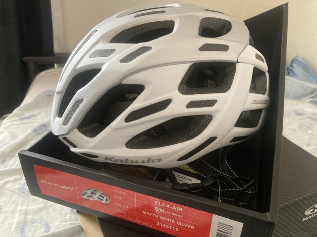 私の命を守ってくれたR1くんに別れを告げ、同じKabutoのFLEX-AIRを購入。S/Mサイズで公称185g。軽い!(R1も205gでなかなか軽いけど)