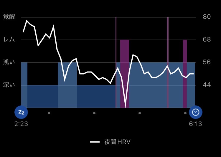 序盤の睡眠の深さとHRVを見るに、あれぐらい食べておいて正解だったっぽい。マジで腹減ったもん。
